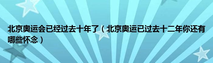 北京奥运会已经过去十年了(北京奥运已过去十二年你还有哪些怀念)