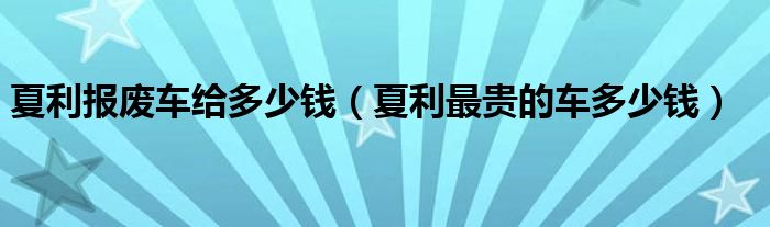 夏利报废车给多少钱(夏利最贵的车多少钱)